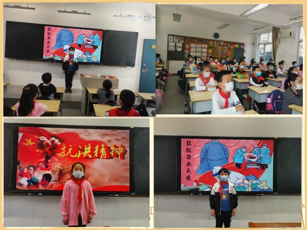 活動(dòng)中,隊(duì)員們共同參與講述黨史故事,探尋黨的故事,感悟黨的初心,并通過(guò)講述抗洪、防疫“車(chē)輪戰(zhàn)”“雙線站”中“天使白”“消防橙”等沖鋒一線的動(dòng)人故事,為黨獻(xiàn)上一份真摯的賀禮。輔導(dǎo)員孟祥利老師分階段講述了黨的歷史和共產(chǎn)黨的奮斗歷史,并讓少先隊(duì)員們交流心得,讓他們堅(jiān)定自己的理想、堅(jiān)定自己的愛(ài)國(guó)心。少先隊(duì)員們認(rèn)真聆聽(tīng)黨史故事,充分了解先烈事跡,增強(qiáng)少先隊(duì)員們的愛(ài)國(guó)熱情和奮斗熱情。