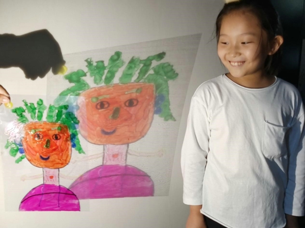 在授課過程中,輔導(dǎo)老師主要利用多種媒材把兒童畫、國畫、水彩畫、綜合版畫融入課堂,以審美觀念和人文素養(yǎng)培養(yǎng)為核心,以提升創(chuàng)新思維為重點(diǎn),傳授給學(xué)生必備的基礎(chǔ)知識(shí)與技能,助其發(fā)展藝術(shù)想象力和創(chuàng)新意識(shí),從而形成自身的藝術(shù)特長和愛好,進(jìn)而培養(yǎng)學(xué)生健康向上的審美趣味、審美格調(diào)和審美理想。在課堂現(xiàn)場(chǎng),豐富多彩的“光影成像”讓孩子們從內(nèi)心深處認(rèn)識(shí)到自己;甜蜜的糖葫蘆讓孩子們露出了開心的笑容;“爺爺?shù)目诖?rdquo;讓孩子們天馬行空的想象力得到了施展……通過這一系列特殊而有趣的活動(dòng),真正讓孩子們?cè)诨顒?dòng)中學(xué)到了專業(yè)的技能。“在活動(dòng)中我學(xué)到了許多知識(shí),感到非?鞓罚液孟矚g這樣的美術(shù)課。”二(1)班王子赫開心地說道。