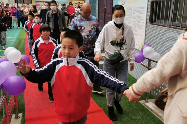 在全校師生的夾道歡迎下,在家長(zhǎng)的陪同下,一年級(jí)的9名新生滿懷好奇地踏上紅毯,通過氣球拱門,一路歡笑步入教室。在老師的引導(dǎo)下,學(xué)生和家長(zhǎng)有序就座。