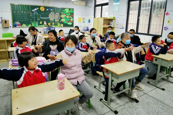 學(xué)生與家長(zhǎng)一起學(xué)習(xí)小律動(dòng)