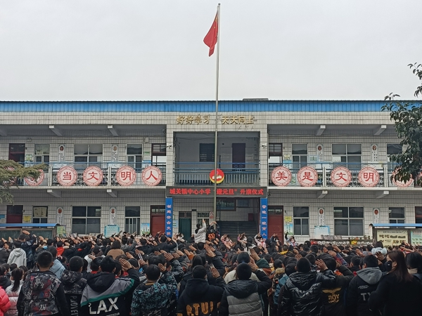 新密市城關(guān)鎮(zhèn)中心小學(xué)舉行“迎元旦”升旗儀式