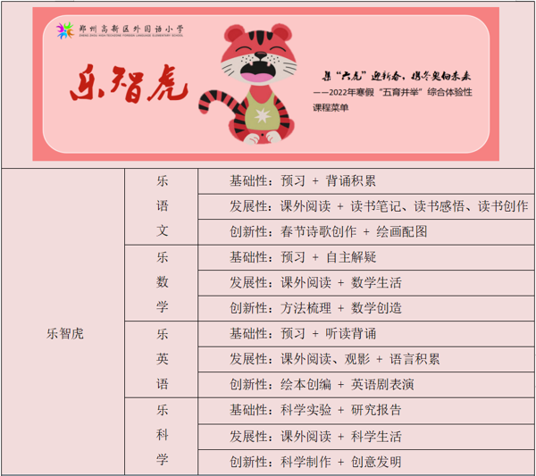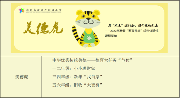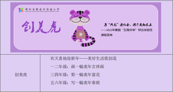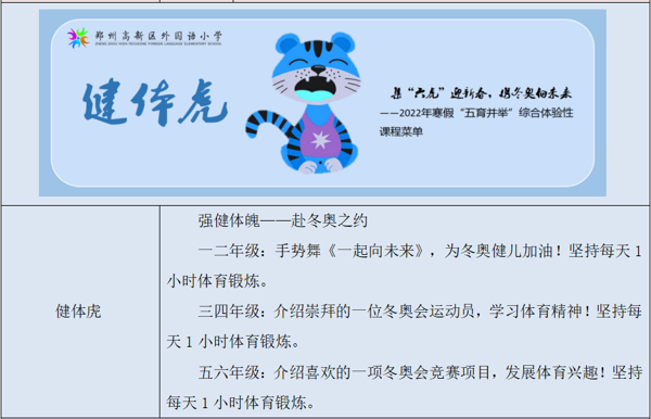 今年寒假我們?yōu)槌霾使麅簜儨蕚淞?ldquo;集‘六虎’迎新春,攜冬奧向未來”——2022年寒假“五育并舉”綜合體驗性課程,一起來看看吧!