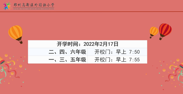 鄭州高新區(qū)外國語小學2022年春季開學致家長及學生的一封信