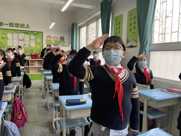 創(chuàng)新形式破難點(diǎn),紅色教育不停歇。升旗儀式上,各班同學(xué)們身穿潔凈的校服,佩戴鮮艷的紅領(lǐng)巾,莊重、嚴(yán)肅,儀式感滿滿。全校各班同學(xué)有序在室內(nèi)完成升旗儀式∶紅領(lǐng)巾學(xué)四史環(huán)節(jié),同學(xué)們觀看了黨史動(dòng)漫《血與火:新中國(guó)是這樣煉成的——青春起航》。通過(guò)這種少年兒童喜聞樂(lè)見(jiàn)的黨史學(xué)習(xí)形式,同學(xué)們了解了中國(guó)第一個(gè)社會(huì)主義青年團(tuán)在上海霞飛路漁陽(yáng)里6號(hào)成立的情景。一群熱血青年,在這里創(chuàng)辦了第一所為黨培養(yǎng)青年干部的學(xué)校——外國(guó)語(yǔ)學(xué)社。他們積極聯(lián)系和團(tuán)結(jié)進(jìn)步人士,宣傳先進(jìn)的思想與主張,推動(dòng)建立各地青年團(tuán)組織,青春信仰在此起航。同學(xué)們觀看后,紛紛為先輩們的勇敢、忘我犧牲精神肅然起敬。