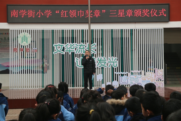 中新河南網(wǎng)3月1日電(吳勇強)2月28日,管城區(qū)南學街小學在升旗儀式上舉行了“紅領(lǐng)巾獎?wù)?rdquo;三星章頒獎儀式。