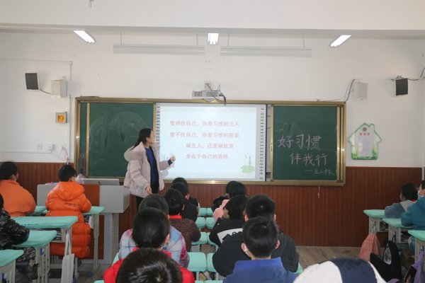 隊(duì)會(huì)課上,各中隊(duì)輔導(dǎo)員從學(xué)習(xí)習(xí)慣、行為習(xí)慣、道德和生活習(xí)慣等各方面對(duì)學(xué)生的好習(xí)慣養(yǎng)成教育情況進(jìn)行了總結(jié)并針對(duì)部分好習(xí)慣進(jìn)行了實(shí)操訓(xùn)練。如針對(duì)學(xué)習(xí)習(xí)慣,各班再次重溫了課前準(zhǔn)備、讀書(shū)習(xí)慣、寫字習(xí)慣、課堂討論、表?yè)P(yáng)、下課禮儀等課堂常規(guī)習(xí)慣要求;針對(duì)隊(duì)列要求,各班還進(jìn)行了實(shí)操展示和訓(xùn)練。“經(jīng)過(guò)一系列的養(yǎng)成教育活動(dòng),學(xué)生的精神面貌得到明顯改善,上課井然有序、言行舉止文明。”一二班班主任王格格老師說(shuō)道。五(3)中隊(duì)輔導(dǎo)員張文麗也向?qū)W生講道:“好習(xí)慣不是憑空而來(lái)的,好的習(xí)慣都是我們從小事、從點(diǎn)滴做起的,好習(xí)慣重在培養(yǎng)。”