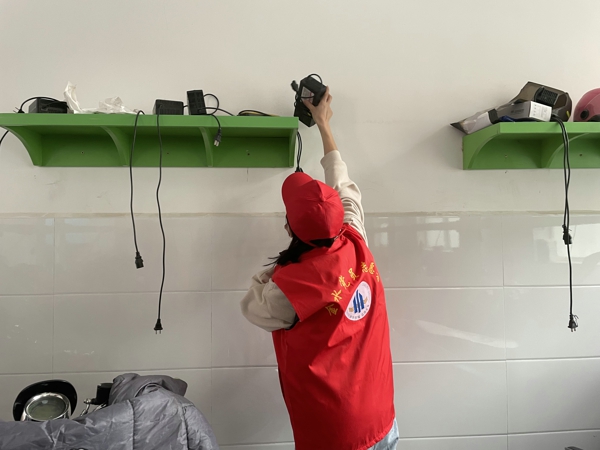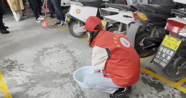 在校黨團員有序集合后,便在黨支部的帶領(lǐng)下緊張地忙碌起來了,有的老師將車輛移出來以方便打掃;有的黨員拿著掃帚清掃地面,對垃圾、雜物進行了徹底清理,不留衛(wèi)生死角;有的團員拿著抹布對門窗、扶手、墻面進行擦拭。清掃場面熱火朝天,干勁十足,黨團員團結(jié)協(xié)作,互幫互助,配合默契,雖然累在其中,但也其樂融融。經(jīng)過一通不怕麻煩、不怕臟累的打掃,車棚的衛(wèi)生環(huán)境煥然一新,電動車擺放整齊有序。