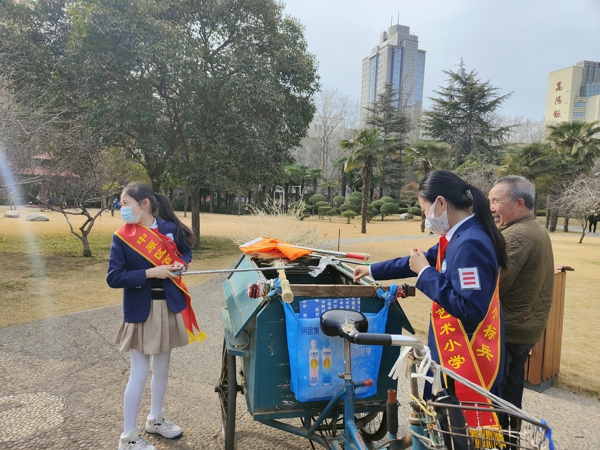 隨后,小志愿者們?cè)谳o導(dǎo)員老師的帶領(lǐng)下走進(jìn)碧沙崗公園,在做好自身防護(hù)的同時(shí),盡己所能幫助清潔員爺爺一起清掃垃圾,擦拭宣傳欄、健身器材、垃圾桶等公共物品,以實(shí)際行動(dòng)引導(dǎo)少先隊(duì)員學(xué)習(xí)雷鋒精神從身邊做起、從日常做起,共創(chuàng)共享和諧美好生活。