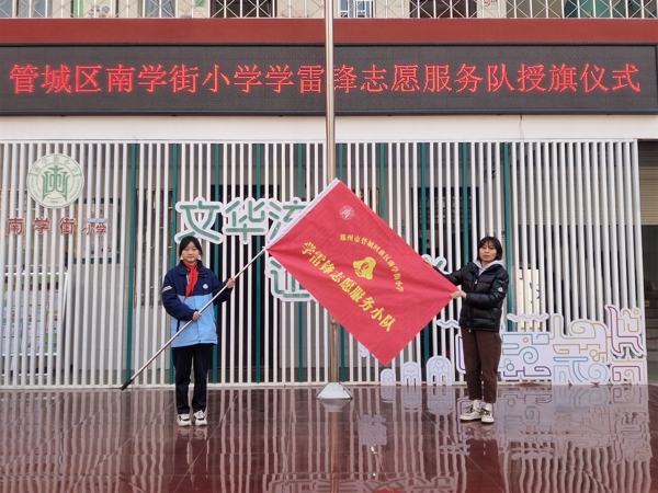 鄭州管城區(qū)南學街小學開展“學雷鋒志愿服務隊”授旗儀式暨志愿服務活動