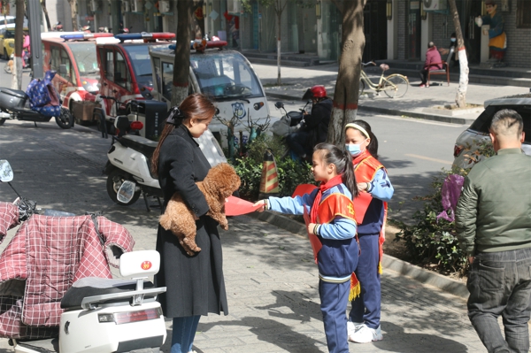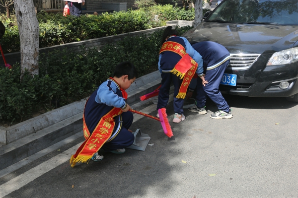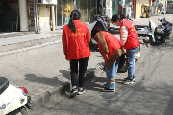 授旗儀式結束后,在學校黨支部的號召下,該校黨團隊志愿者紛紛走上街頭,走進社區(qū)開展了學雷鋒志愿宣傳服務活動;顒又,他們不僅清理擦拭了文化報欄等櫥窗,清掃了街道路面的垃圾,還深入開放式老舊小區(qū),幫助叔叔阿姨一起打掃小區(qū)環(huán)境衛(wèi)生并向周邊的市民發(fā)放文明倡議宣傳單。通過勞動,隊員們也體會了環(huán)衛(wèi)工和勞動者的艱辛,大家紛紛表示以后要多多參與志愿服務活動并積極宣傳雷鋒精神,讓家鄉(xiāng)因為志愿服務而變得更加美麗。