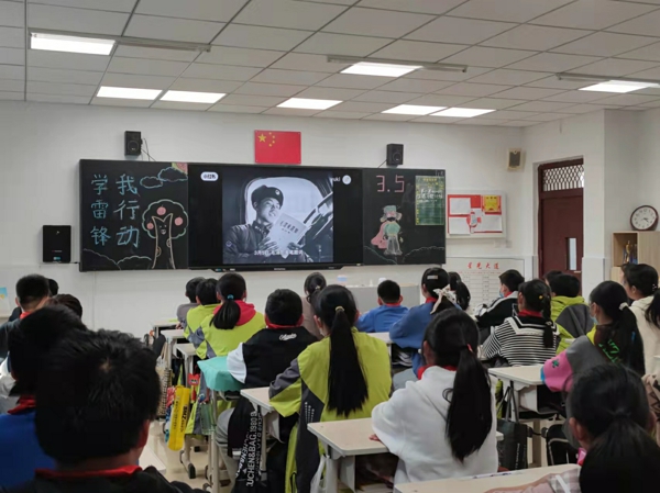 在黨支部書記、校長曹建峰的指導下,學校成立了學雷鋒志愿服務大隊,學校還以班級為單位成立了志愿服務小隊,并舉行了學雷鋒志愿服務隊授旗儀式。主題教育實踐活動中,各中隊輔導員帶領同學們認真觀看了《永遠的雷鋒》紀錄片的部分片段,同時,輔導員還和少先隊員一起搜集雷鋒同志的圖片、文字資料,引導少先隊員們認識雷鋒、向雷鋒致敬、向雷鋒學習。