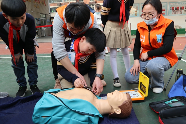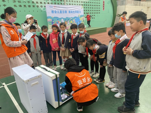李慶欣副校長為學(xué)生們講解了活動的目的和意義;社工負(fù)責(zé)人介紹壹基金“兒童平安計(jì)劃——生存訓(xùn)練營”的活動內(nèi)容;六組學(xué)生在老師的帶領(lǐng)有序進(jìn)入分配的學(xué)習(xí)實(shí)踐場地,分別參加由專業(yè)講師組織訓(xùn)練的六個培訓(xùn)科目,包含繩結(jié)大比拼、海姆立克急救法、AED的使用方法、千斤頂抬升、毛毯擔(dān)架計(jì)時賽、家具防傾倒等6個小游戲。講師們耐心講解、示范,孩子們認(rèn)真聆聽,積極參加,在動手操作體驗(yàn)中學(xué)到了實(shí)用的生存小技能;顒咏M織有序,現(xiàn)場氣氛熱烈,學(xué)生們?nèi)硇耐度牖芋w驗(yàn)。在參與式、體驗(yàn)式和沉浸式的游戲互動中,在歡樂的游戲體驗(yàn)中,學(xué)生生們掌握了自救互救的小技能,進(jìn)一步提升了應(yīng)對災(zāi)害危險(xiǎn)的意識和能力。