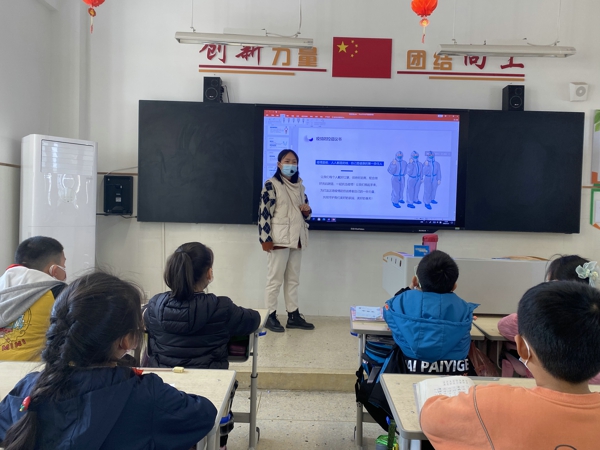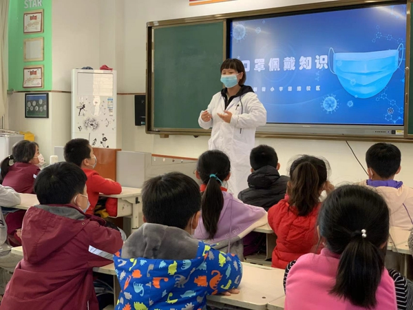 活動中,老師們再次向學生們講解了新冠病毒的傳播途徑,讓學生了解到新冠肺炎作為呼吸道傳染病的一種,正確佩戴口罩是預防傳播感染的重要途徑。校區(qū)校醫(yī)王瑾也走進班級,向學生們講解正確佩戴、保存、處理廢棄口罩的流程和方法,提醒學生做好個人衛(wèi)生防護。