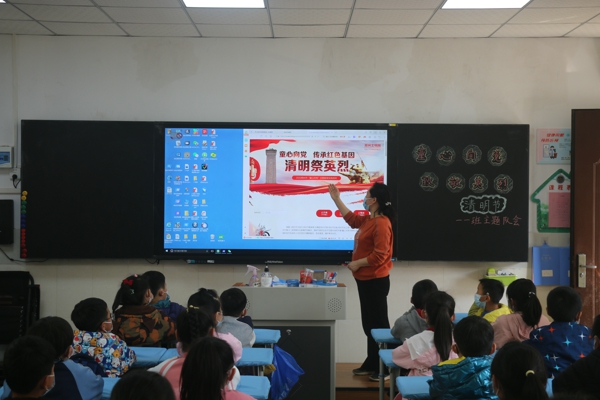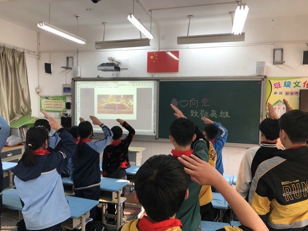 隊會課上,各中隊輔導員向隊員們介紹了清明節(jié)的由來和習俗,同時講述了董存瑞、邱少云、劉伯承、狼牙山五壯士等英雄的愛國主義事跡。“今天的幸福生活是無數(shù)革命先烈拋頭顱、灑熱血用生命換來的,我們應該努力學習,為將來建設祖國做貢獻。”五(3)班商子墨激動地說道。二(1)中隊輔導員劉廣勇向隊員們講道:“愛國是奉獻的實質(zhì)和核心。雖然我們身處和平年代,無法體會戰(zhàn)爭的困苦與磨難,但我們?nèi)圆荒芡洑v史,在中華民族面臨危難的時候,是先烈們挺身而出,把滿腔的熱血灑遍祖國的大地,我們要向他們致敬。”