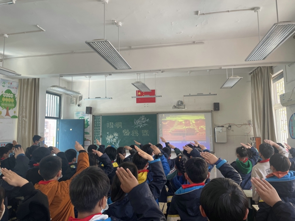 活動(dòng)在莊嚴(yán)的升旗儀式中開(kāi)始,隊(duì)員們表情肅穆,立正站好,高舉右手,凝視五星紅旗;顒(dòng)中,各輔導(dǎo)員老師通過(guò)資料和圖片等形式向隊(duì)員們展示了清明節(jié)的由來(lái)、歷史淵源、傳統(tǒng)習(xí)俗等;隨后輔導(dǎo)員老師們給隊(duì)員們講述了革命故事,帶領(lǐng)隊(duì)員們觀看了革命題材影視片段,緬懷革命先烈豐功偉績(jī)。