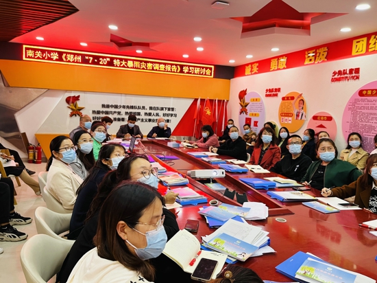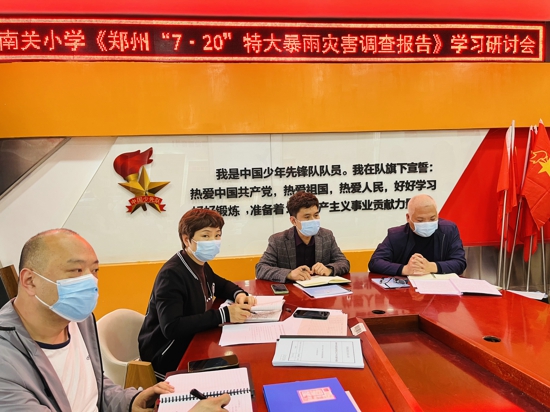 鄭州管城區(qū)南關(guān)小學(xué)開展 《鄭州“7·20”特大暴雨災(zāi)害調(diào)查事故》專題會(huì)議
