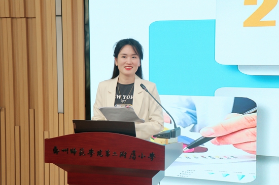 劉蓓蓓主任分享了外國語小學(xué)德育工作的探索和實(shí)踐。她以《用一朵花去燦爛滿園春色》為主題,從構(gòu)建德育課程、強(qiáng)化主陣地建設(shè)、提升工作效能、協(xié)同家校社共育等四個(gè)方面進(jìn)行闡述。秉持“讓每個(gè)人都擁有出彩的機(jī)會(huì)”,在“大任務(wù)進(jìn)階”德育課程統(tǒng)領(lǐng)下,細(xì)化育人目標(biāo),遵循兒童成長規(guī)律,融合國家、地方、校本三級課程,探索出彩評價(jià),聯(lián)動(dòng)自主管理,落實(shí)“五育并舉”,指向?qū)W生良好習(xí)慣的養(yǎng)成。該德育課程體系的創(chuàng)新性建構(gòu)與實(shí)施,為大家?guī)砜山梃b、可推廣的有效樣本。
