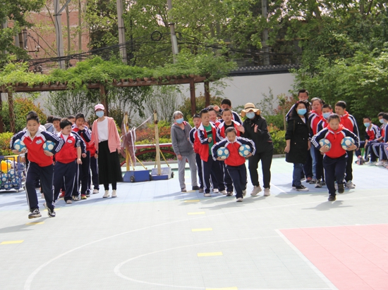 最后是足球射門,“進啦進啦!”運動員們大展身手,歡呼聲此起彼伏。賽場上,運動員們?nèi)褙炞,比賽緊張刺激,與此同時,場外的啦啦隊員們搖旗吶喊,加油助威,整個操場上都充滿了活力。