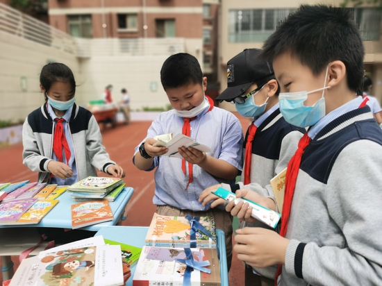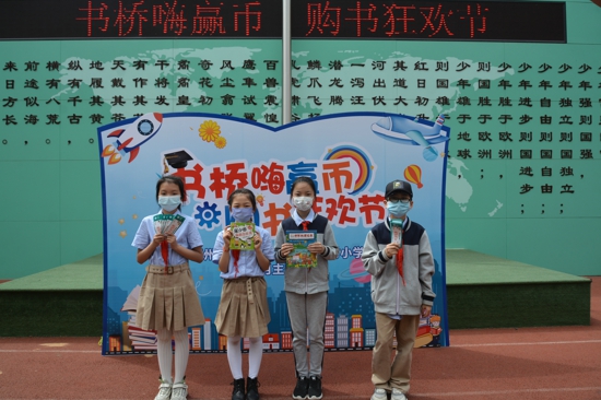 最引人矚目的要數孩子們手里拿的“校園閱讀幣”,10元、5元、2元、1元四種面值,這可是孩子們通過日常閱讀積分換取的,等同于人民幣在購書狂歡節(jié)上使用。不同面值的閱讀幣流通在各個圖書攤位上,加減乘除大家用,賠本買賣不可取,討價還價是常事,購得圖書有秘籍。同學們臉上洋溢著幸福的笑容,各個沉浸在購書狂歡節(jié)所帶來的妙趣中。沒有在校內購得心儀書籍的,還可以在4月23日持校園閱讀幣到指定書店購買新書。