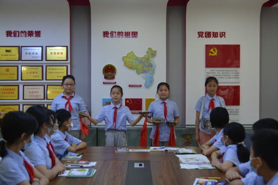 報告廳內,隊員們用課本劇形式喜迎黨的二十大,《為中華之崛起而讀書》正在有趣的上演。瞧,小演員們無比投入,用自己的肢體語言將人物角色表現(xiàn)得淋漓盡致。當童年周恩來的形象重現(xiàn)舞臺上時,那種胸懷大志,立志報國的精神感染了在場每一位人,隊員們紛紛表示,要向童年周恩來學習,為中華崛起而讀書。