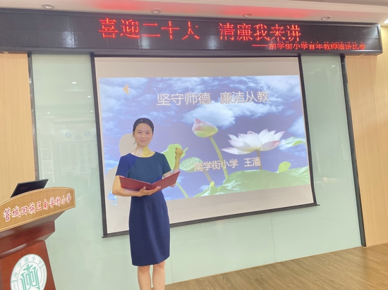 賽后,參賽教師王潘說道:“‘儉以養(yǎng)德,廉以從教,’我將會時刻提醒自己以廉潔奉獻的紅燭精神教書育人,讓廉潔之花開在南學校園。”
