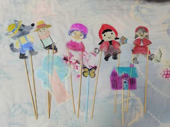 學習了軸對稱圖形之后,學生們盡情發(fā)揮自己的想象,憑借自己的智慧,通過折一折、畫一畫、剪一剪、貼一貼等形式,一個個精巧的構想,一份份新穎的創(chuàng)意,一個個鮮活的皮影戲角色便躍然紙上。