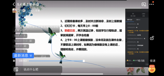 家長會上,各班班主任首先結(jié)合目前鄭州疫情的嚴峻形勢,要求各位家長一定要引起重視,并且提醒大家要堅持每日健康打卡,遵守各項防控規(guī)定,積極配合屬地社區(qū)和學(xué)校做好疫情聯(lián)防聯(lián)控工作,近期盡量居家不外出。堅持講衛(wèi)生、勤洗手、常通風(fēng)、少聚集。其次,各班班主任對接下來的線上教學(xué)進行了詳細安排,對在學(xué)習(xí)過程中可能出現(xiàn)的問題,向?qū)W生和家長提出了合理化的建議,希望家長們?yōu)楹⒆犹峁┌察o的上課環(huán)境,做好后勤配合工作,切實擔(dān)負起學(xué)生的監(jiān)管職責(zé),指導(dǎo)和督促學(xué)生按照學(xué)校作息時間按時參加學(xué)習(xí),按照授課教師的要求完成各科作業(yè),并提交教師進行批閱。最后,班主任提出,家校之間要相互理解、尊重、信任和配合,齊心協(xié)力促進孩子的學(xué)習(xí)和成長。