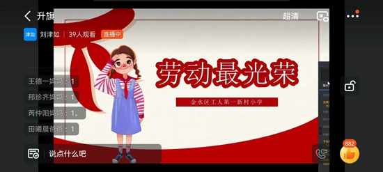 升旗儀式上,學校黨支部副書記朱玉興發(fā)表講話,對學生們表示深切關心,呼吁孩子們線上學習能做到認真自律,按時完成每天的學習任務,同時做一些力所能及的家務勞動,并進行體育鍛煉。在五一勞動周中,同學們積極參加,利用假期自主開展勞動家務主題活動,升旗儀式上,學校對各班勞動小達人進行了表彰,孩子們受到很大鼓舞,更加激發(fā)了他們參與勞動的熱情。