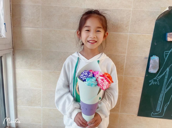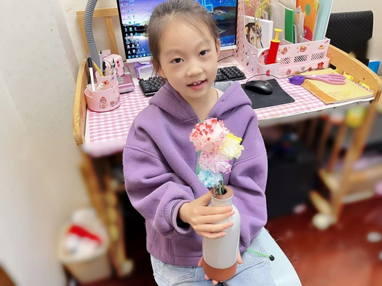 線上課堂中,在美術(shù)老師陳雨馨的帶領(lǐng)下,學(xué)生們通過使用家里的紙巾制作出一朵朵五彩繽紛的“康乃馨”,學(xué)生們還用吸管、卡紙做成花枝進(jìn)行裝飾,讓這份特別的禮物更加精致。陳雨馨表示,學(xué)生居家線上學(xué)習(xí)期間,可能每天都會(huì)和醫(yī)務(wù)工作者接觸,也真真實(shí)實(shí)地感受到“大白”們的辛苦。在國(guó)際護(hù)士節(jié)到來之際,也想通過自己的課堂,讓學(xué)生們能夠?qū)⒆约簩?duì)于防疫一線的醫(yī)務(wù)人員的感謝與祝福用這種形式表達(dá)出來。