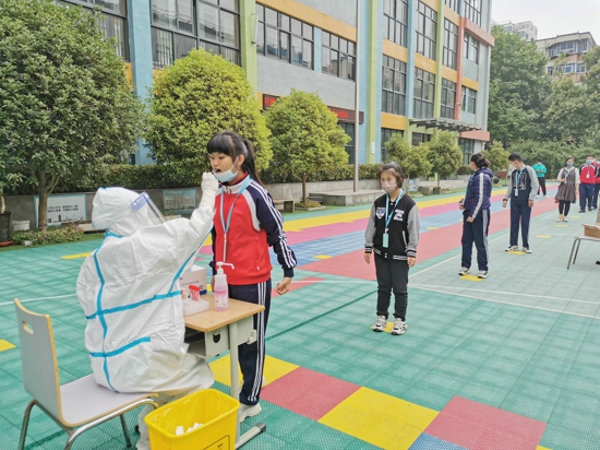 9點,全校師生開始有序進行核酸檢測,經(jīng)歷過多輪核酸檢測后,學生們也越來越配合防疫人員的工作,張開嘴巴,大聲喊“啊”,整個檢測過程快速有序。