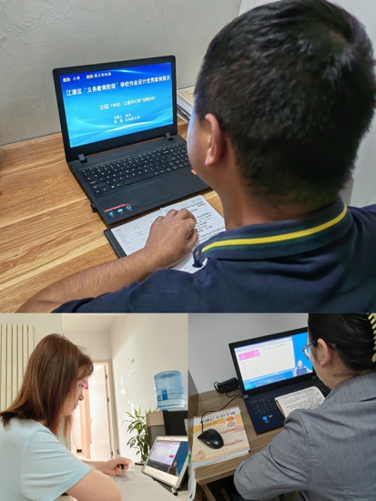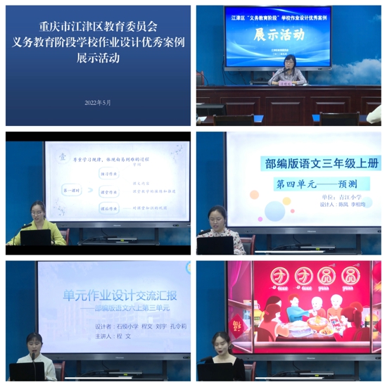 本次活動(dòng)采用線上直播的方式進(jìn)行。江津區(qū)各個(gè)學(xué)校教師代表圍繞“雙減”背景下優(yōu)化作業(yè)設(shè)計(jì)這一主題,或深入淺出、或理論聯(lián)系實(shí)際,從不同的角度暢談了在優(yōu)化作業(yè)方面有效獨(dú)到的做法。如四牌坊尚融小學(xué)方英老師從緊扣要素整體架構(gòu)、單元重組整合作業(yè)、聚焦素養(yǎng)優(yōu)化作業(yè)三個(gè)方面進(jìn)行分享,貫穿大單元教學(xué)設(shè)計(jì)理念,體現(xiàn)對(duì)教學(xué)內(nèi)容的整體設(shè)計(jì)。石壩街小學(xué)饒芹老師結(jié)合學(xué)科特點(diǎn),從課前預(yù)習(xí)、課堂練習(xí)、課后練習(xí)三方面展開作業(yè)設(shè)計(jì),強(qiáng)調(diào)設(shè)計(jì)作業(yè)要尊重學(xué)習(xí)規(guī)律,體現(xiàn)由易到難的過程;關(guān)注個(gè)體差異,落實(shí)因材施教;注重環(huán)節(jié)相扣,指向課程教學(xué)目標(biāo)等。紫東教師認(rèn)真地聆聽著各位老師的分享,紛紛表示在今后將提高自主設(shè)計(jì)作業(yè)能力,切實(shí)減輕學(xué)生的課業(yè)負(fù)擔(dān)。