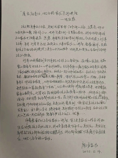 5月14日的講座內(nèi)容是關(guān)于特殊孩子的特殊教育,育智學(xué)校的家長(zhǎng)們紛紛表示講座內(nèi)容貼合實(shí)際,感同身受,并在班級(jí)群內(nèi)分享心得,寫下感悟。特殊孩子的成長(zhǎng)需要家長(zhǎng)付出更多的努力,家長(zhǎng)要內(nèi)心堅(jiān)定、堅(jiān)強(qiáng),不斷提升自己的教育理念,高質(zhì)量陪伴孩子共同成長(zhǎng)。