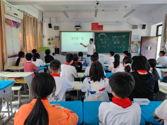 中新河南網(wǎng)5月19日電(吳勇強(qiáng))夏花開得正艷時,莘莘學(xué)子回歸日。5月19日,鄭州市管城回族區(qū)南學(xué)街小學(xué)的學(xué)子們正式回歸校園,為了讓學(xué)生快速適應(yīng)疫情防控下的校園生活,確保學(xué)生返校復(fù)學(xué)后的身心健康,順利過渡到線下學(xué)習(xí)中,學(xué)校統(tǒng)一組織開展了“返校復(fù)學(xué)第一課”活動。
