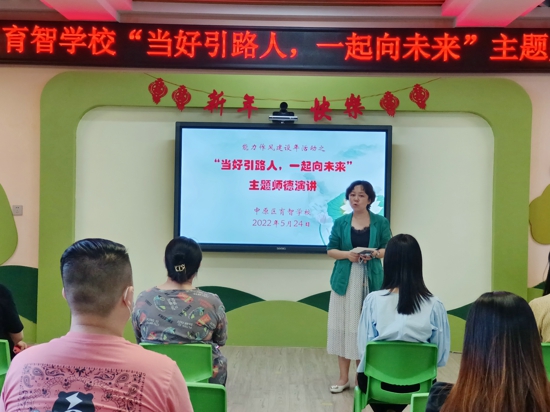 中新河南網(wǎng)5月25日電(吳勇強(qiáng))為進(jìn)一步凝聚師德正能量,強(qiáng)化師德師風(fēng)建設(shè),激發(fā)教師滿懷教書(shū)育人、啟智求真的教育理想,落實(shí)立德樹(shù)人根本任務(wù),5月24日下午,中原區(qū)育智學(xué)校開(kāi)展了“當(dāng)好引路人,一起向未來(lái)”主題演講活動(dòng)。