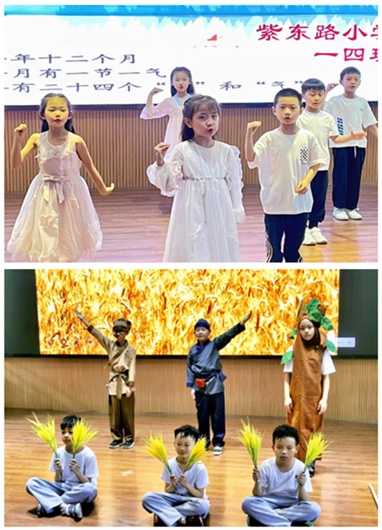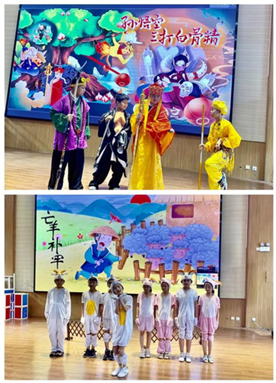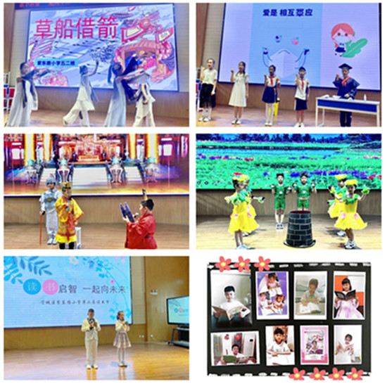 動態(tài)活動展示以班級為單位,全校共有23個班級參加。各班表演的內(nèi)容豐富多彩,形式不拘一格,有一年級的兒歌童謠表演《中華孝道》、《聽我說》、《孫悟空打妖怪》、《二十四節(jié)氣歌》、《一年級》;二年級的童話故事課本劇表演《七色花》、《蜘蛛開店》、《坐井觀天》、《小馬過河》、《大象的耳朵》;三年級的寓言故事課本劇表演《鄭人買履》、《守株待兔》、《濫竽充數(shù)》、《陶罐和鐵罐》、《自相矛盾》、《亡羊補牢》;四年級的科普故事課本劇表演《用心抗議你我同行》《垃圾分類家園更美》《有一個星球叫地球》《只有一個地球》;五年級的名著節(jié)選課本劇表演《三打白骨精》、《草船借箭》《紅樓春趣》等等。從內(nèi)容的篩選、劇情的編排,到道具的準備、集體的融合,各個班級都精心準備,令人耳目一新,給大家?guī)砹艘粓鼍始姵实难莩,這場精彩的表演為讀書節(jié)添加色彩,給在場師生帶來了一場視覺和聽覺上的盛宴。