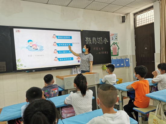 據(jù)悉,活動前期,該校大隊部給各班發(fā)放防溺水承諾書、致家長和孩子的一封信。全體學生在防溺水簽名卡上簽字,以實際行動來表明自己預防溺水、珍愛生命的承諾,時刻銘記防溺水安全的重要性。此外,各班班主任老師利用班會課時間,進行防溺水主題教育。課堂上,班主任老師通過列舉溺水傷亡的悲慘案例,告訴學生“溺水身亡”是我國中小學生意外身亡事故中的“頭號殺手”。同時,老師們向?qū)W生介紹了游泳時注意事項、溺水的主要原因和急救、自救常識。