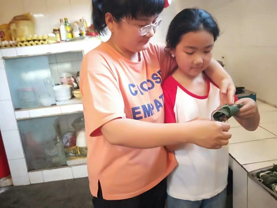 其次假期期間,隊員們還進行了家庭勞動實踐——包粽子!家長先為孩子演示了粽子的制作過程,詳細講解了粽子的包法和注意事項,對從未接觸過包粽子的同學(xué)來說,這是一個大挑戰(zhàn)。包粽子講究手法和力度,稍不注意,粽葉就破了。孩子們認真觀察,專心實踐。大家手握細長的粽葉,折成漏斗形狀,再放上糯米和紅棗,慢慢綁上細線,制成一個個三角形的糯米粽子。雖然大家手法不太熟練,但都能以誠摯的心表達著對屈原的懷念之情。棱角里,總有歷史的傳承,軟糯間,藏著文化的清香。
