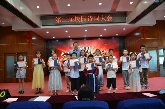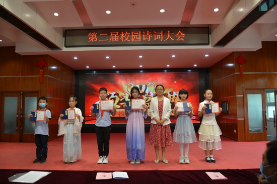 本次比賽,采取小組積分制與個人積分制雙重規(guī)則。通過激烈角逐,五一班車婉玉與六一班王銘辰最終勝出,榮獲“金星小詩人”稱號;懷辰俽等4名同學(xué)榮獲“銀星小詩人”稱號,張耀羽等14名同學(xué)榮獲“新星小詩人”稱號,103名同學(xué)被評為“優(yōu)秀小詩人”;16個班級榮獲團體獎。孫冬梅校長、朱玉興副書記、李慶欣副校長為獲獎班級及個人頒獎。