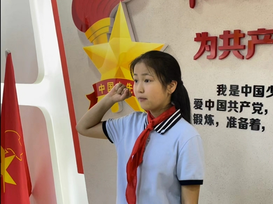 車婉玉同學(xué)帶領(lǐng)新隊(duì)員宣誓