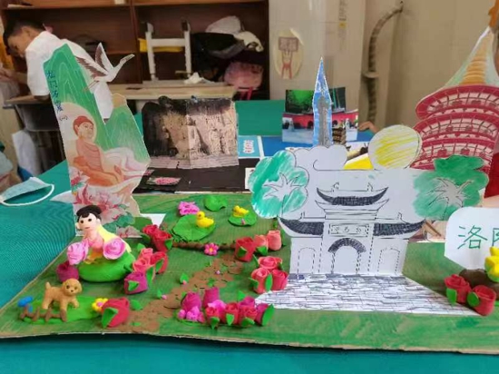 室內(nèi)展館里,方方正正的閱讀小報(bào)在繩線下起舞,屋頂垂下的美景照片讓人夢回長安;手工繪制的海報(bào),讓學(xué)生們?cè)谔槭袌鲋惺斋@快樂,那歡笑不禁讓人想起絲綢之路上的駝鈴聲聲;五顏六色的彩帶,巧心設(shè)計(jì)的黑板報(bào),都讓學(xué)生們?cè)诓煌某鞘斜尘跋聲秤。室外展板上,一幅幅精美的手抄?bào)將學(xué)生們的研究思路和成果展現(xiàn)的淋漓盡致。