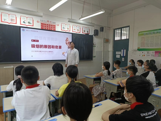 中新河南網(wǎng)6月2日電(吳勇強)為了讓隊員們認識到煙草的危害,幫助其樹立正確價值觀,踐行綠色、健康的生活方式,5月31日上午,鄭州市中原區(qū)建設(shè)路第三小學(xué)在六年各中隊開展了“世界無煙日”主題健康教育。