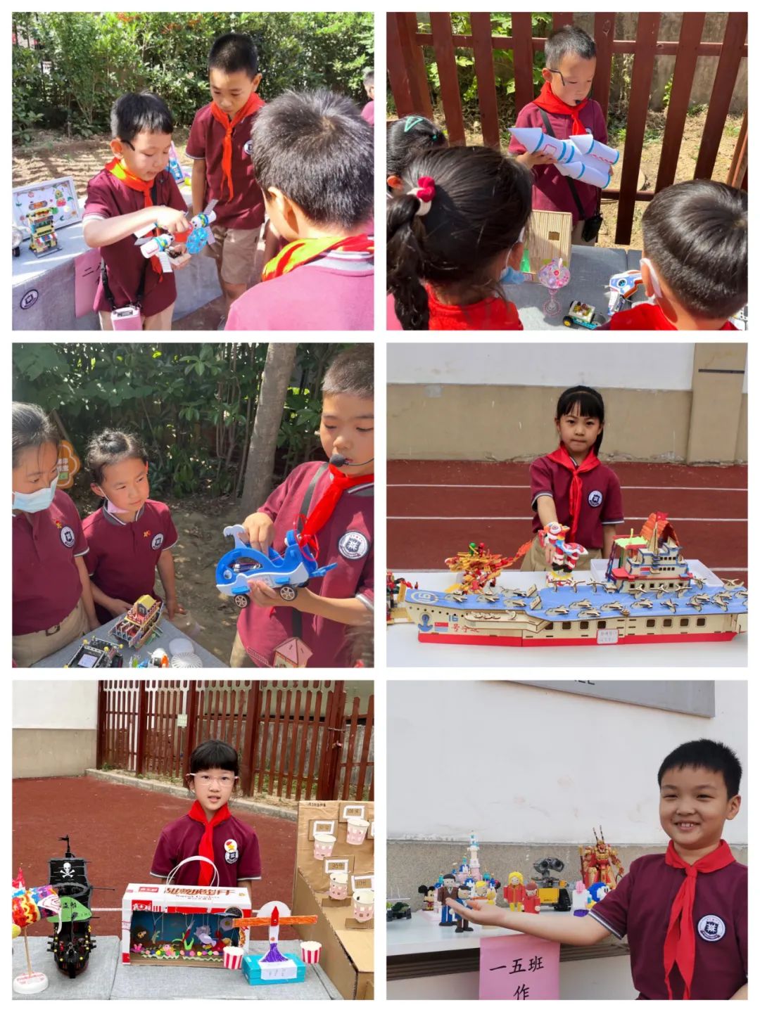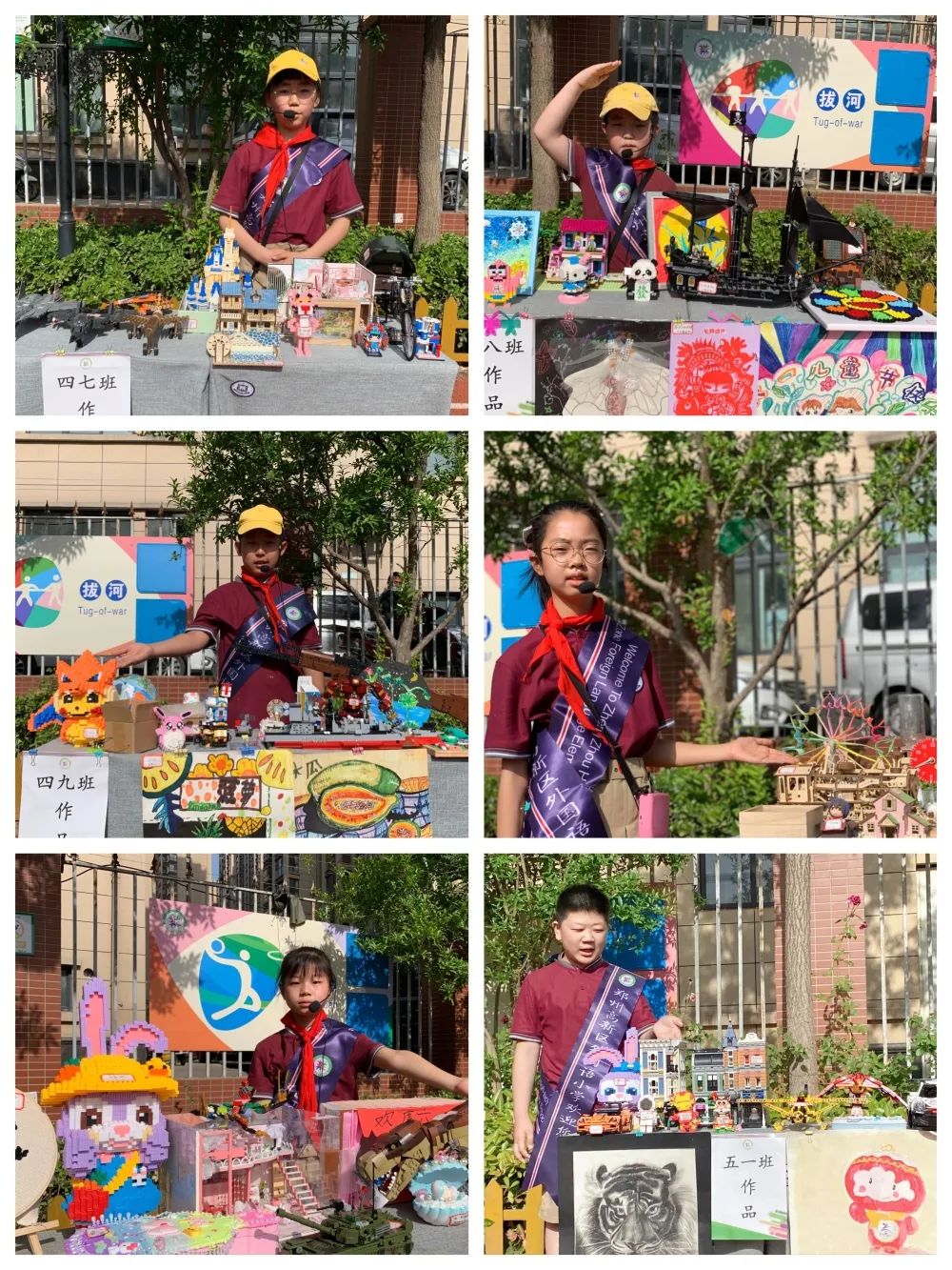 每個(gè)班級(jí)都布置了自己的“攤位”,要將班級(jí)所有學(xué)生的出彩成果“擺攤兒”展示。或創(chuàng)意發(fā)明,或精美手工,或傳統(tǒng)技藝,或優(yōu)秀作業(yè),或翰墨書(shū)法,或繪本創(chuàng)編……,每個(gè)出彩果兒都使出了自己的“看家本領(lǐng)”,每個(gè)班級(jí)都派出了“接待團(tuán)”、“講解團(tuán)”,向路過(guò)自己“攤位”的老師和同學(xué)展示自己班級(jí)學(xué)生的風(fēng)采。在展示中肯定自我、相互認(rèn)同,在交流中增長(zhǎng)見(jiàn)識(shí)、啟迪智慧。