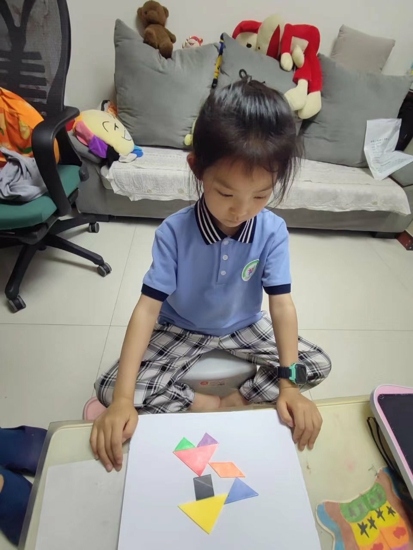 瞧,一年級的學(xué)生們多認(rèn)真啊!七巧板在他們手中一會變成了小魚,一會變成了小房子......為你們小創(chuàng)意點贊!