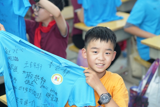 石榴果們最后一次在班主任老師的帶領(lǐng)下,走過長長的紅毯,展開六年的童年畫卷,見證自己成長的足跡。他們換上了班級(jí)特制T恤衫,在班主任的帶領(lǐng)下,簽名留念。大家相互約定,無論未來走向多高多遠(yuǎn),大家的心始終在一起!