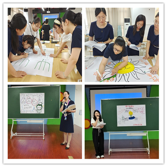 接著,語文組的教師們以小組為單位探討交流,采用圖文結(jié)合的形式呈現(xiàn)集體的學(xué)習(xí)成果,各組上臺發(fā)言的代表提綱挈領(lǐng)、深入淺出,將本次新課標(biāo)學(xué)習(xí)交流會引向深入。