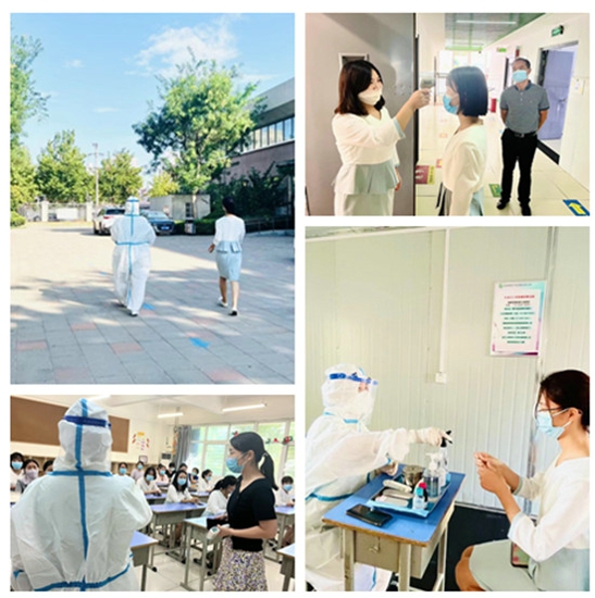 學(xué)生有序進(jìn)入校園后,正副班主任老師在教室門口進(jìn)行第二次體溫監(jiān)測。上課中如遇到學(xué)生不舒服情況,班主任老師第一時間聯(lián)系校醫(yī),由校醫(yī)帶至隔離室進(jìn)行測溫,聯(lián)系疫情防控人員,立即對密接人員進(jìn)行轉(zhuǎn)移,并對教室以及教學(xué)樓進(jìn)行消殺。