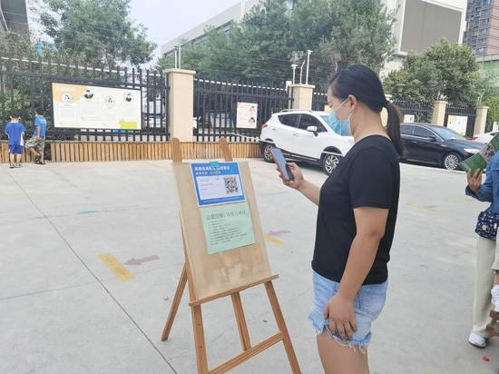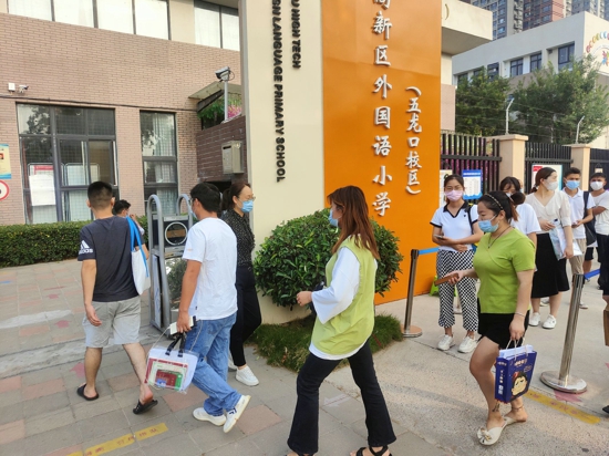 8點整,在引導老師的指引下,家長們出示健康碼、行程碼,并測溫,有序進入校園等候區(qū)。“為了減少人員聚集,我們把片區(qū)內(nèi)的家長分成組,在學校的室內(nèi)場館為家長發(fā)放報名編號,按編號入場,并且只能由一位監(jiān)護人進入校園報名登記。”五龍口校區(qū)教務副主任楊瑞娟介紹。