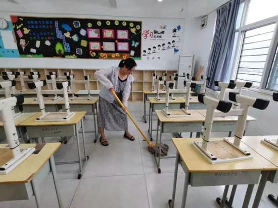 上午,各位老師熱情地投入到了衛(wèi)生清掃工作中。老師們拖洗地面、擦抹窗臺、除灰塵、去污漬,不放過任何一處地方,以不怕臟、不怕累的勞動身影闡釋無言的默契,讓各個教室、辦公室煥然一新。
