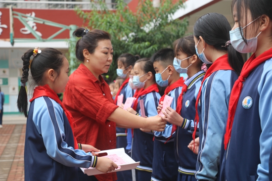 儀式現(xiàn)場,該校副校長遆亞娜也為獲得暑期實踐活動標(biāo)兵和優(yōu)秀作業(yè)標(biāo)兵的少先隊員頒發(fā)了榮譽(yù)證書并勉勵全體隊員向他們學(xué)習(xí),讓優(yōu)秀成為一種習(xí)慣。