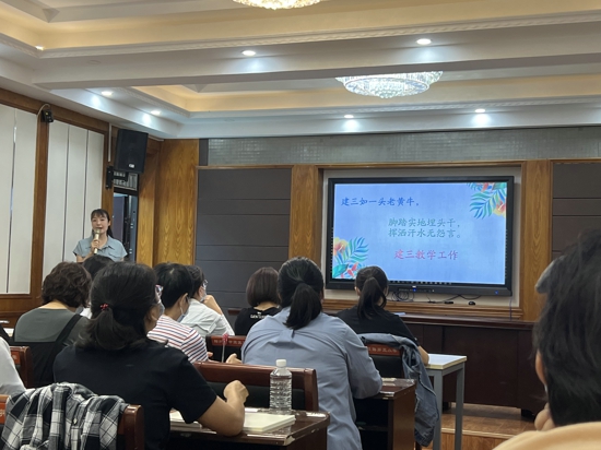 井銀副校長主持會議,首先介紹了建三小學(xué)的新力量。隨后由王景麗主任宣布本學(xué)期新的分工,新的課程任務(wù),新的課程安排,校本教研,以及教師成長要求。王主任特別強(qiáng)調(diào)德高為師,身正為范,要養(yǎng)成良好的教育習(xí)慣。因此要求青年教師堅持書寫學(xué)習(xí)心得、教育隨筆及反思。并鍛煉自己,多聽課,大膽實(shí)踐不斷創(chuàng)新,不斷提高教學(xué)水平,扎實(shí)學(xué)好專業(yè)知識,努力讓自己的教學(xué)水平和科研水平都趨向成熟。